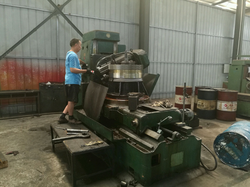 我公司在朝陽鎮(zhèn)工業(yè)區(qū)已初具規(guī)模,年產(chǎn)專用減速機(jī)殼體及油田專用減速機(jī)千余臺套。使用V法真空鑄造,v法造型線是一種新興的造型工藝,是采用單一干砂(不加水、粘結(jié)劑及附加物)作型砂,用塑料薄膜經(jīng)加熱后在帶有通氣孔和軸氣裝置的模樣上腹膜成型,密封砂箱,并依靠真空泵抽出型內(nèi)空氣,造成鑄型內(nèi)外壓力差使干砂得到緊實(shí),經(jīng)行程所需的型腔的一種物理造型法。關(guān)于迪砂v法造型線的優(yōu)缺點(diǎn)如下:1、干砂造型,簡化了砂處理,舊砂回收率達(dá)95%以上?!?、不必采用振動落砂等設(shè)備,改善了車間環(huán)境。3、在負(fù)壓下澆注,金屬液流動性好,可澆出2--3mm的薄壁鑄件。4、在模樣表面覆蓋薄膜,模樣不與砂型直接接觸,便于起模,模樣起模斜度很小或沒有,提高了鑄件尺寸精度,減少了對模樣的磨損。